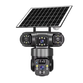V380 PTZ Camera 3 Lens Solar Surveillance Camera Wireless Wifi Two Way Audio Auto Tracking 4G Sim Card Solar CCTV Camera